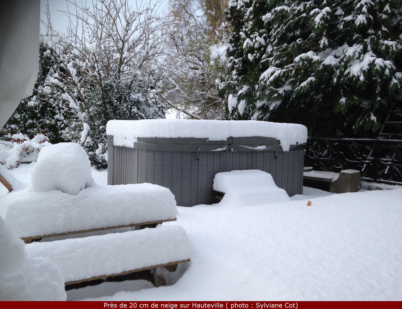Comme prévu, la neige a bel et bien été au rendez-vous dans le département de l’Ain. Si les précipitations neigeuses sont restées dans le même ordre de quantités que lors de l’épisode de la fin octobre, ce ne fut pas le cas sur toute la frange Est du département qui a subi les plus fortes précipitations. La neige encore discrète en fin de journée de lundi où elle fit son apparition en Bresse vers les 15 h ce lundi, s’est nettement intensifiée en seconde partie de nuit. Et ce matin, comme il y a trois semaines le haut Bugey s’est réveillé sous un épais manteau neigeux; bien plus que ce qui avait prévu lors des dernières prévisions météo. La couche de neige fraîche atteint parfois les 20 cm dès 800 m d’altitude comme sur le plateau d’Hauteville. Localement ça grimpe à 25 cm dans le Valromey vers Ordonnaz ou 27 cm à Chatillon en Michaille. Ce qui n’est pas sans conséquences pour les déplacements urbains. Dans la région d’Oyonnax, on relève près de 15 cm; tout autant sur le secteur de Bellegarde qui a donc été bien poudré. Dans le pays de Gex, on enregistre souvent une petite dizaine de centimètres avec localement des routes difficiles. Pour passer le col de la Faucille, les équipements spéciaux sont obligatoires et recommandés pour franchir toutes les zones de reliefs. Plus on se déplace à l’ouest et plus la situation s’améliore. Les chaussées sont le plus souvent au noir en plaine du Bugey où la couche atteint suivant les secteurs les 4 à 6 cm mais on circule assez bien. C’est le cas aussi sur l’autoroute A40 qui ne pose aucun problème. Enfin pour franchir le Cerdon, on ne constate que quelques traces de neige, une situation bien différente de la galère du mois dernier. L’ouest du département n’a vu quant à lui que de rares flocons. La remontée du mercure en cours de journée va faciliter la fonte en plaine et la limite pluie/neige va remonter vers les 1000 m d’altitude. Pour les jours à venir, la neige ne touchera plus que les montagnes au-delà des 1200 m.
