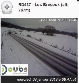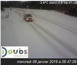 L’hiver semble véritablement s’installer dans le Doubs en ce début de mois de janvier comme le montre les différentes caméras du réseau routier. On y signale des difficultés de déplacements dès 800 m d’altitude comme sur la RD 641 à la Roche du prêtre. Les équipements spéciaux sont plus que recommandés. Tout cela devrait toucher toute la région dans le courant de la journée. Prudence dans tout le Centre Est.