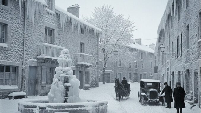 A compter de la fin de la première décade de ce mois de février 1929, une véritable vague de froid va débouler sur notre pays. Elle gagna très vite notre région Rhône Alpes accompagnée fréquemment de chutes de neige qui seront parfois très conséquentes. Pendant une semaine le froid n’ abdiquera pas, aussi bien de nuit comme de jour. Très vite ce froid gagna le sud du pays. Autour du 18, le froid vif recula mais les nuits offrent encore des températures négative. On mande que cette vague de froid de février 1929 fut la plus intense depuis celle qu’ avait connu ce mois-là en 1895.Retour sur quelques faits climatiques qu’ a subi notre région :
