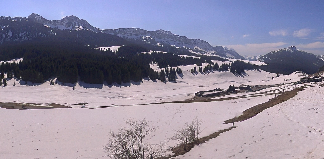 Alors que la situation devrait nettement changer à compter de mardi et surtout mercredi avec le retour de la neige, le temps a des allures printanières sur les massifs de Haute Savoie comme ici sur le plateau des Glières. En raison des commémorations de la seconde guerre mondiale, ce dimanche, les pistes de ski et les locations sont fermées.