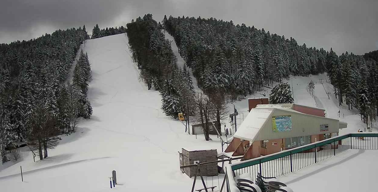 Après le retour notable hier de la neige sur les hauteurs de l’Ardèche, les stations du département présentent ce dimanche encore des allures de plein hiver. Comme ici à la station de la Croix de Beauzon. Elle s’est à nouveau parée d’un joli manteau blanc.
