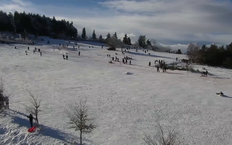 L’accalmie sur le front des chutes de neige sur les hauteurs Ardéchoises ce matin font le plaisir des vacanciers. Comme on le découvre sur les webcams du massif du Pilat, beaucoup en profitent pour chausser les skis, sortir les luges ou bien les raquettes où le manteau neigeux tout frais a été important.