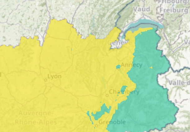 La qualité de l’air devrait être majoritairement dégradée si bien que quasiment tous les départements de la région sont passés au niveau jaune, exception de quelques secteurs alpins. Mardi 20 et mercredi 21 juillet, les niveaux d’ozone vont monter légèrement et la qualité de l’air sera dégradée à localement mauvaise.