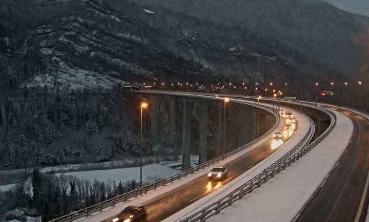 La perturbation qui a abordé Rhône-Alpes dans la nuit a apporté de la neige en plaine sur l’axe rhodanien, déposant 1-3cm par endroits. Les précipitations y ont nettement faibli et se font désormais progressivement sous forme de pluie à basse altitude (les plaines de l’Ain plus tardivement).