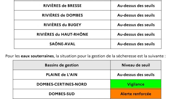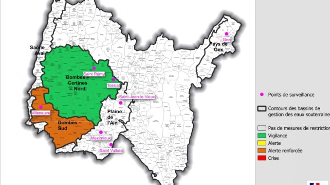 • maintenir le bassin de gestion eaux souterraines « Dombes-Sud » en situation d’alerte renforcée ;