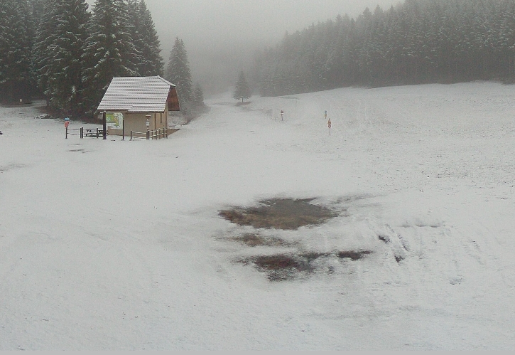 Côté plateau du Retord, les flocons sont tombés la nuit dernière, ne laissant hélas qu’une faible pellicule aux plans; légèrement plus du côté de Cuvéry. Dommage car un froid sec va s’installer pour les prochaines 48 h. Les gestionnaires du domaine attendront les prochaines chutes de neige pour envisager l’ouverture officielle. Les flocons ne sont pour l’heure pas à envisager avant mercredi prochain mais pour l’heure il es trop tôt pour annoncer si les quantités seront importantes.