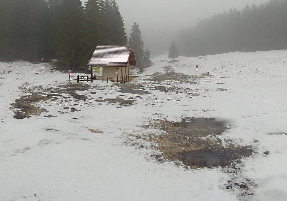 Toute la nuit, le ciel reste couvert, avec des pluies éparses. Il s’agit d’abord de pluie à toute altitude, puis la neige apparaît sur le Crêt de la Neige en seconde partie de nuit.