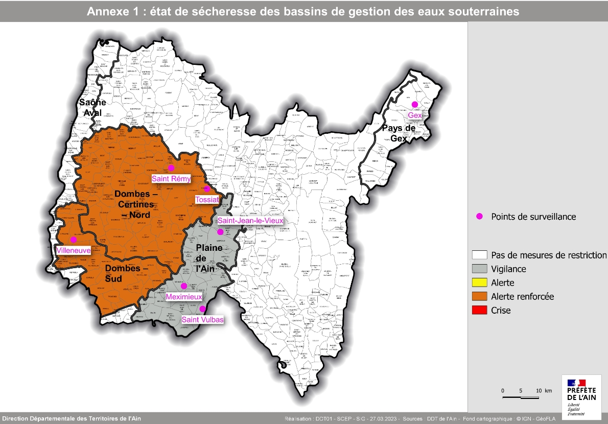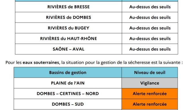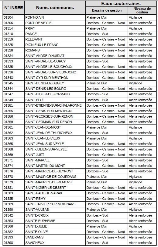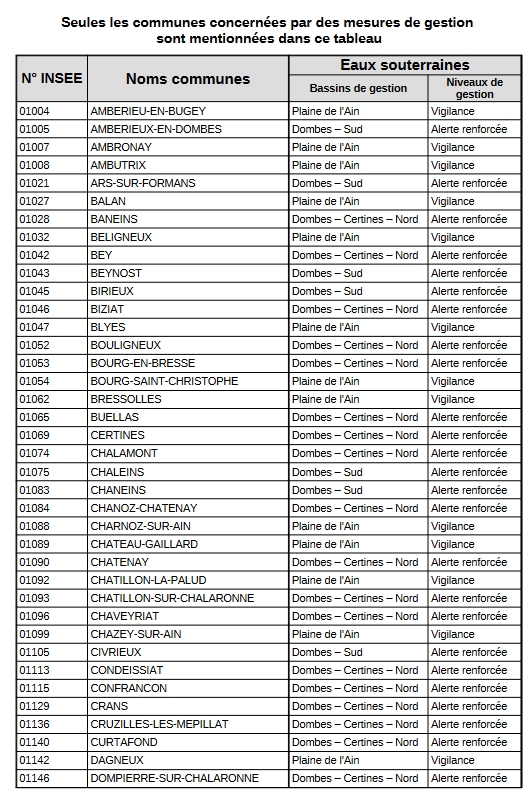 - placer le bassin de gestion eaux souterraines « Plaine de l’Ain » en situation de vigilance.