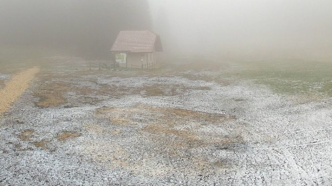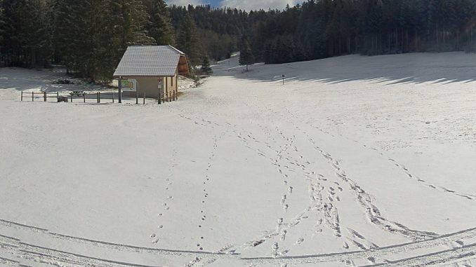 Comme prévu, en cette fin de nuit les flocons ont refait une petite apparition sur les montagnes aindinoises. Et ce dès 1000 à 1100 m d’altitude. c’est le cas sur la plupart des domaines du département, que ce soit sur le site nordique de la Praille, sur le plateau du Retord, sur Sur Lyand oud e façon plus franche sur les monts jura.