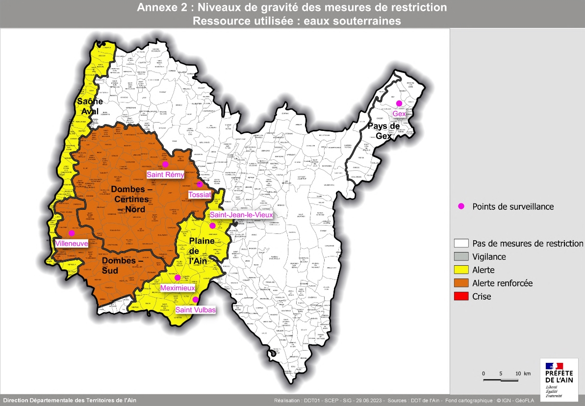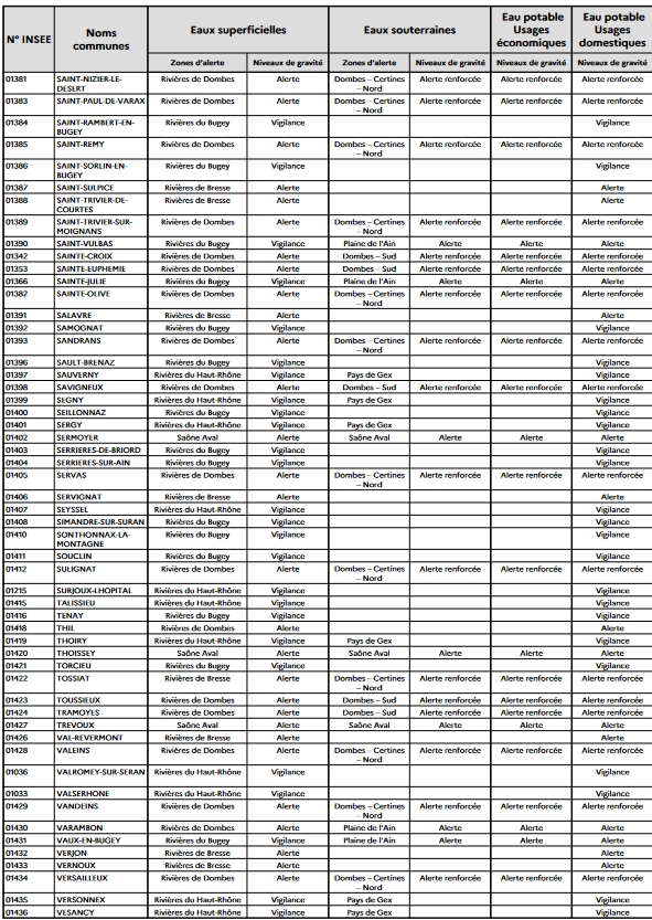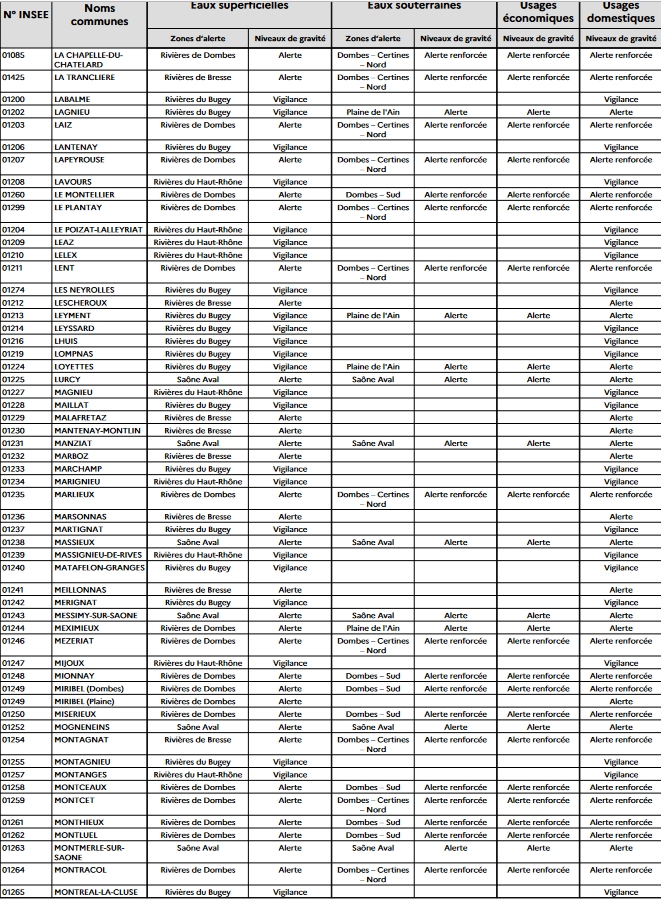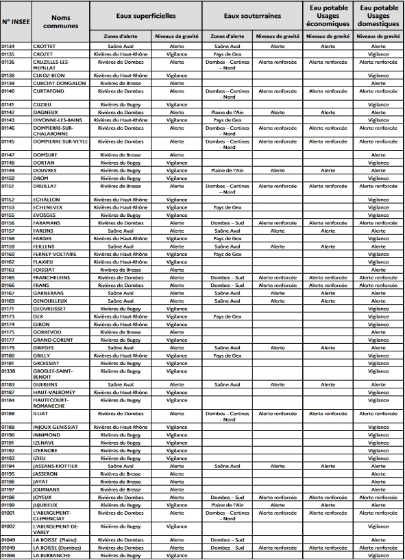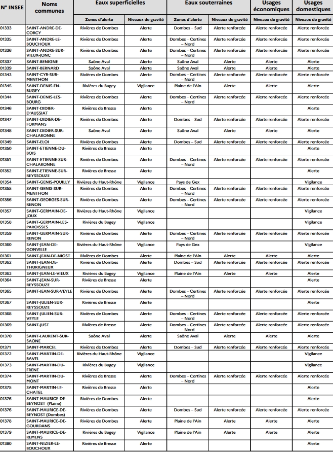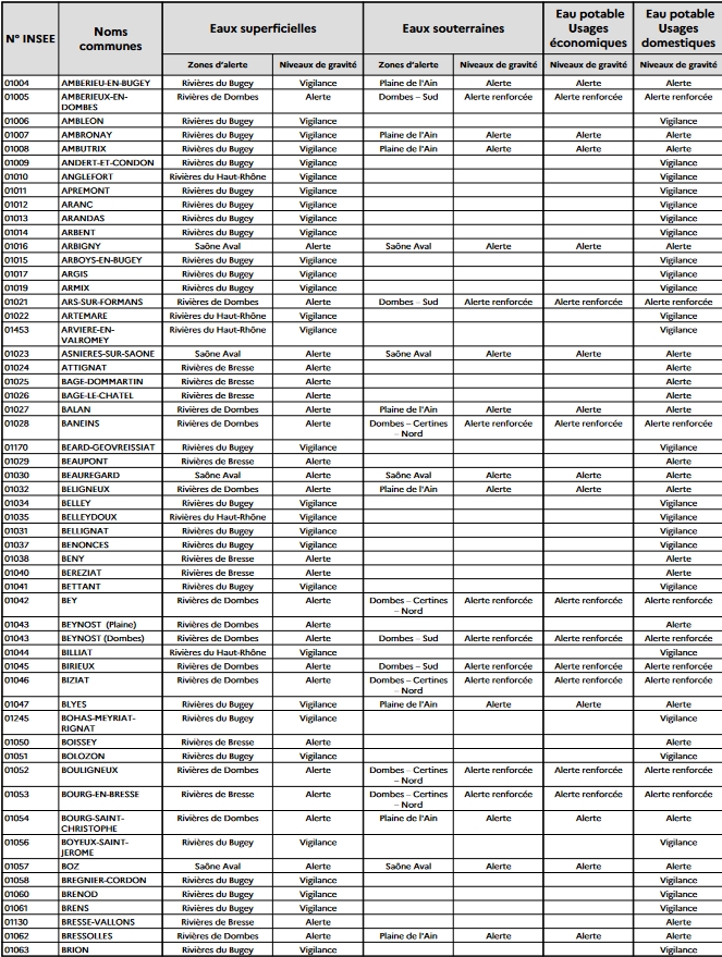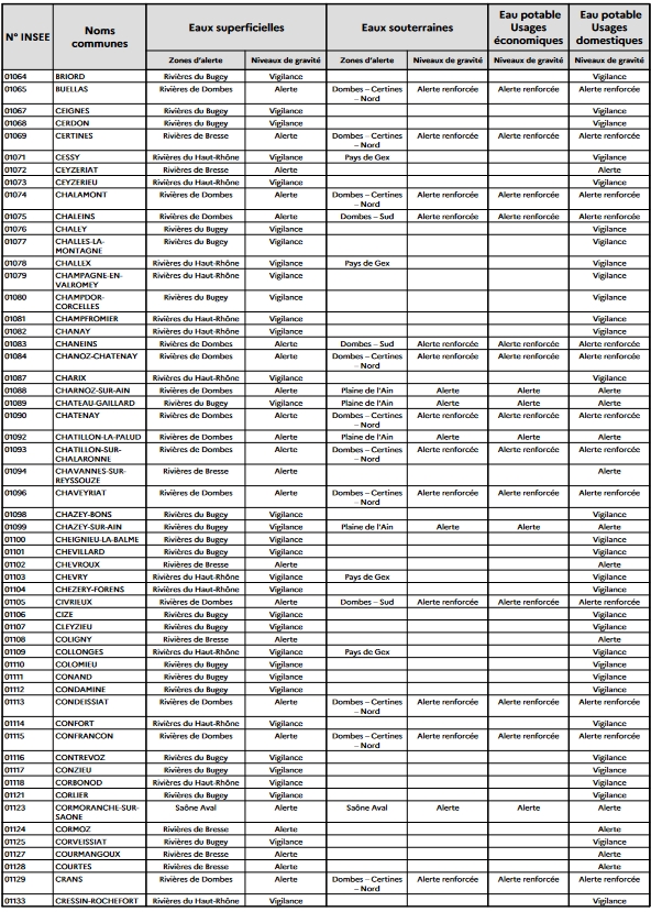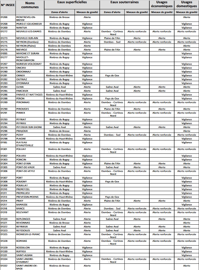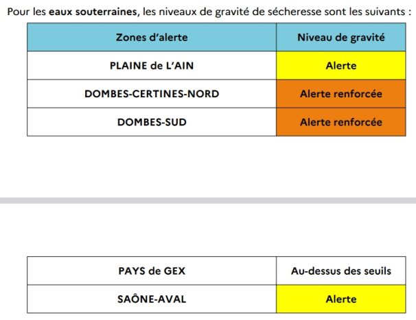 - placer la zone d’alerte eaux souterraines « Plaine de l’Ain » en situation d’alerte ;