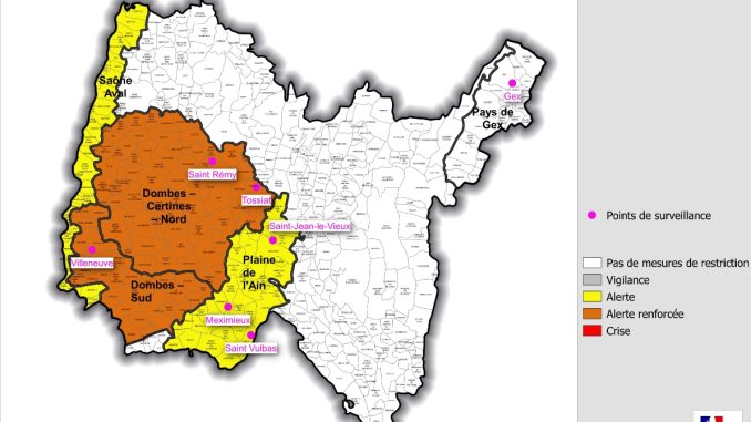 - placer la zone d’alerte « Rivières de Dombes » en situation d’alerte ;