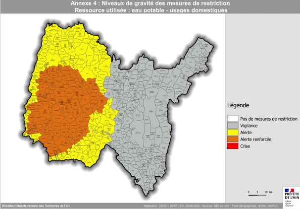 La situation reste très tendue pour l’alimentation en eau potable sur le sud-ouest du département et les convoyages d’eau reprennent sur le Bugey.