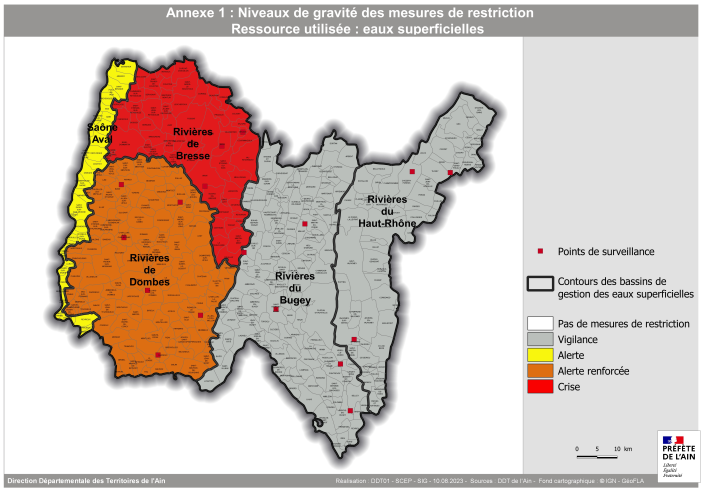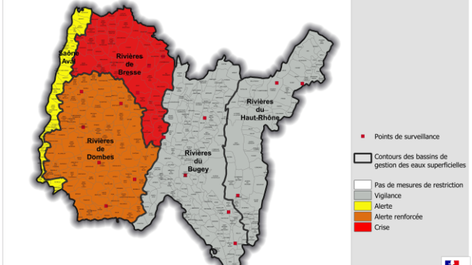 - placer la zone d’alerte eaux superficielles« Rivières de Bresse » en situation de crise ;