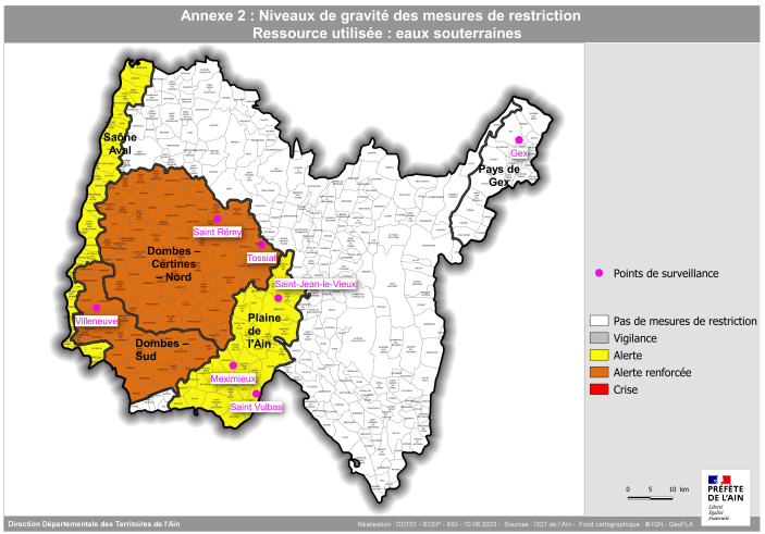 - maintenir les zones d’alerte eaux souterraines « Saône aval » et « Plaine de l’Ain » en situation d’alerte.