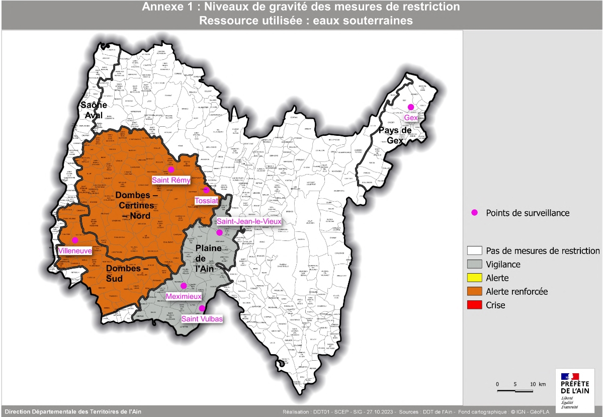 - placer la zone d’alerte eaux souterraines « Plaine de l’Ain » en situation de vigilance.