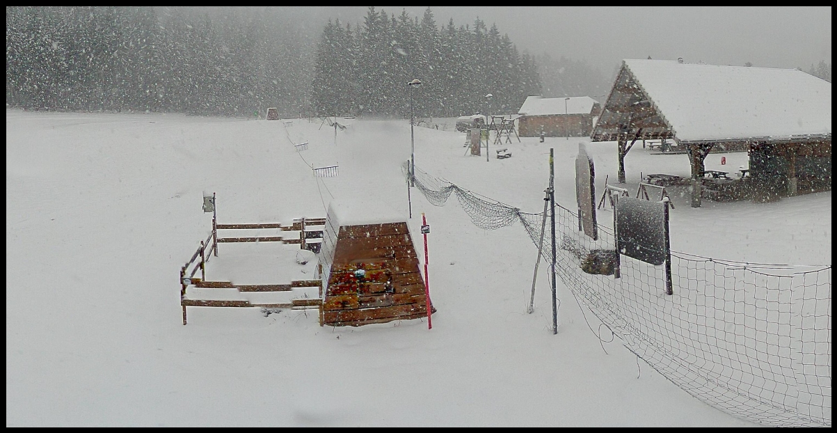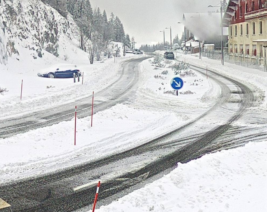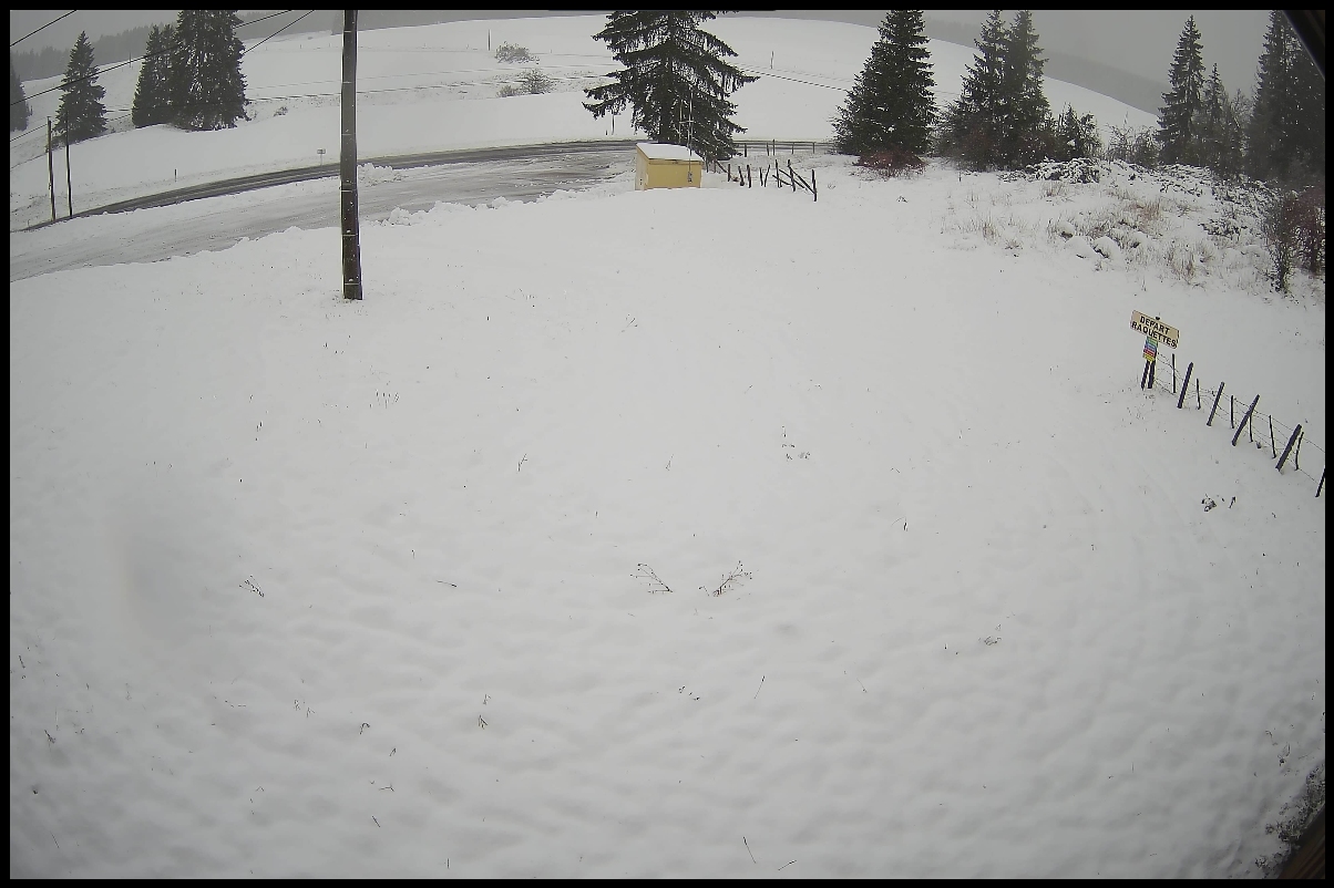 Le plateau du Retord après les premiers flocons de la saison ces derniers jours était recouvert d’une bonne quinzaine de centimètres de neige. Près de là, au centre de Lachat, la couche atteignait un bon 10 cm et les équipements spéciaux étaient nécessaires pour tous les déplacements.
