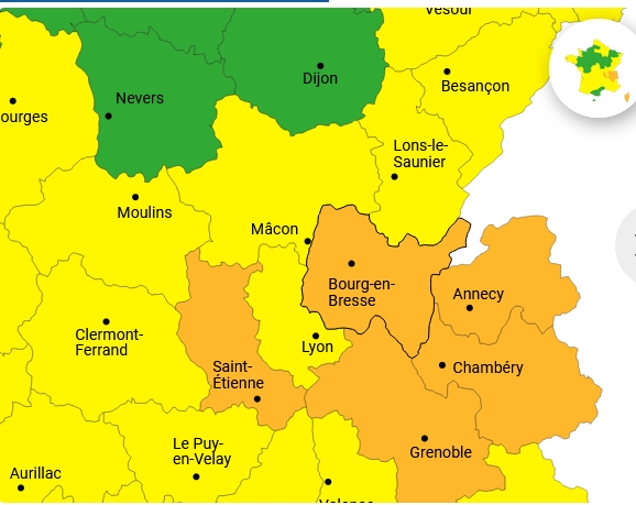 On note également la possibilité de neige à basse altitude dans la Bresse en début de journée de samedi.