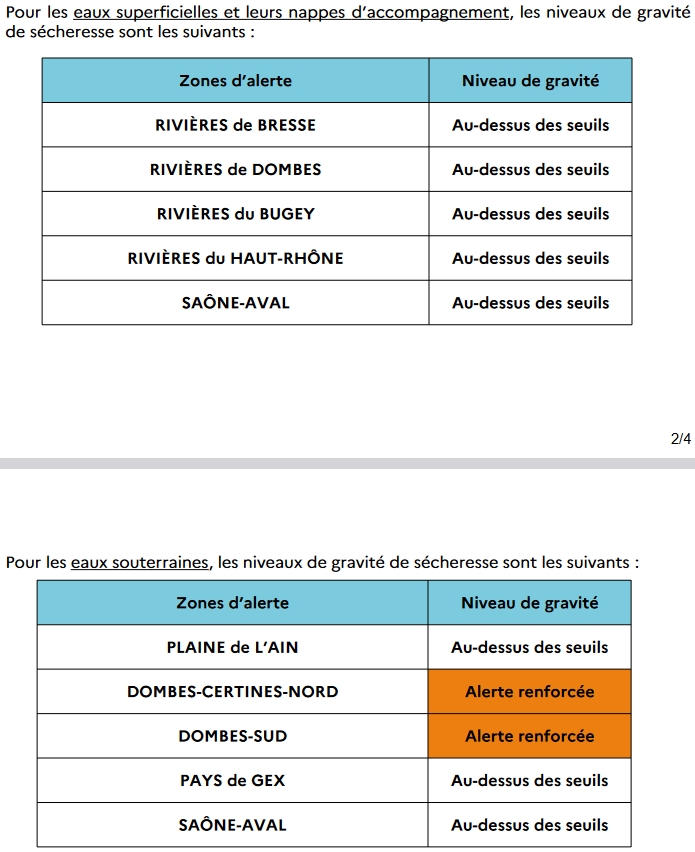 - lever les mesures la zone d’alerte eaux souterraines « Plaine de l’Ain » ;