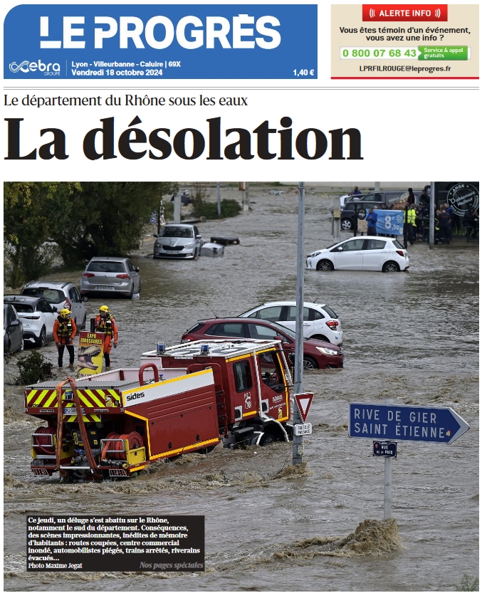 La préfète du Rhône et de Région, Fabienne Buccio, a activé dès jeudi matin le centre opérationnel de défense, qui réunit l’ensemble des services de l’État, des services de secours aux forces de l’ordre en passant par l’Éducation nationale, mais aussi les représentants du Département et de la Métropole pour suivre heure par heure les évènements où une seconde vague de précipitations était attendue en soirée et nuit dernière. Certes, il a plu mais beaucoup moins qu’attendu. ce matin, la vigilance orange crue demeure dans la région.