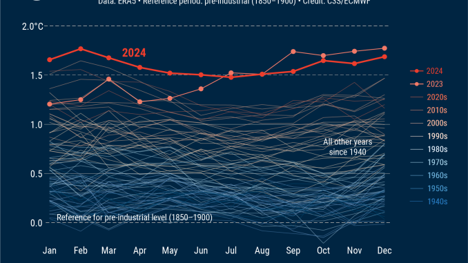 Des températures de surface de l’air mondiales sans précédent en 2024