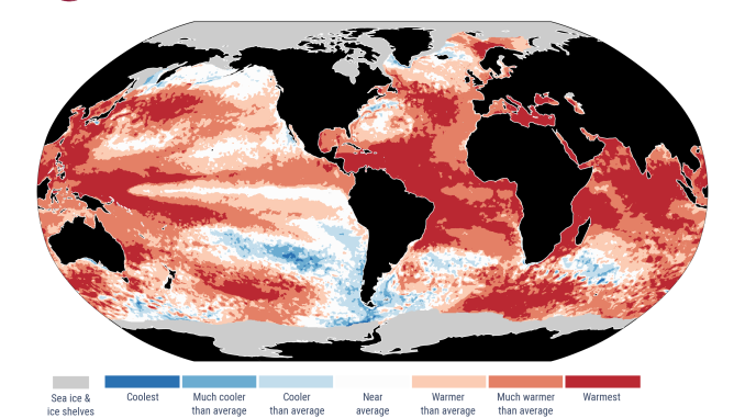 Température de surface de la mer (SST) : températures de surface de la mer élevées dans les océans du monde entier