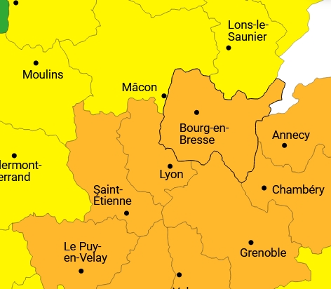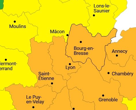 Évolution prévue : A l’avant de la perturbation présente sur l’Auvergne, des orages remontent par le sud du Massif central, et s’étireront rapidement en matinée de l’Ardèche et la Haute-Loire vers la Loire, le Rhône et l’ouest de l’Ain. Ces remontées orageuses se décaleront alors lentement vers l’est de Rhône-Alpes en cours de journée, concernant alors le nord de l’Isère, puis les avants pays savoyards et l’est du département de l’Ain. Pour notre département, la vigilance a été avancée à 10 h ce matin pour se terminer désormais à 16 h. Pour l’heure, des averse faibles tombent ici ou là.