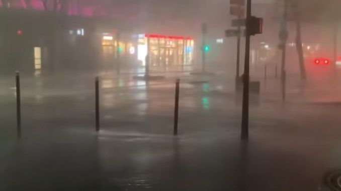 Tout a commencé dans l’après-midi, avec les premiers orages qui ont balayé le sud-ouest, notamment les Landes, avant de remonter vers le nord-est, atteignant Paris en soirée. Dans les Landes, les relevés de Météo-France ont enregistré des rafales à 95 km/h à Biscarosse vers 17 heures, tandis que des grêlons de six centimètres de diamètre ont été signalés à Peyrehorade autour de 16 heures, selon les observations de l’Observatoire Français des Tornades et des Orages Violents (Keraunos). À Montauban, dans le Tarn-et-Garonne, des vents ont atteint 114 km/h, et dans l’Eure, à Bernay, des rafales de 126 km/h ont été mesurées, témoignant de la puissance de ces systèmes orageux. À Paris, l’orage a frappé vers 21 heures, avec des vents culminant à 112 km/h à la Tour Eiffel et 87 km/h à la station de Paris-Montsouris, accompagnés de pluies torrentielles qui ont déversé près de 20 mm d’eau en dix minutes dans le 10e et le 20e arrondissement. Cette pluie intense a transformé certaines rues en rivières, inondant stations de métro comme Guy Môquet et Franklin D. Roosevelt.