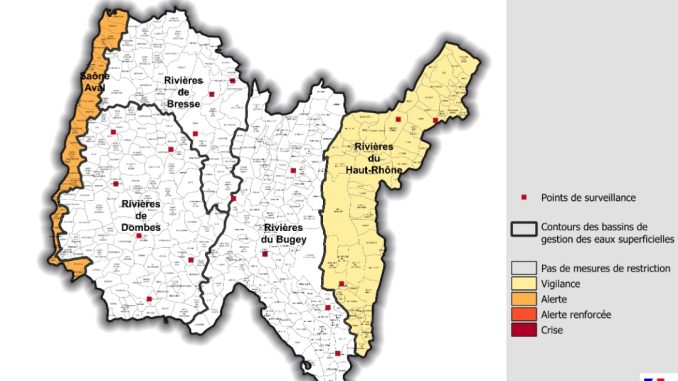 - placer la zone d’alerte eaux superficielles « Rivières du Haut Rhône » en situation de vigilance ;