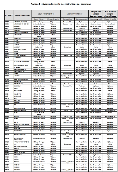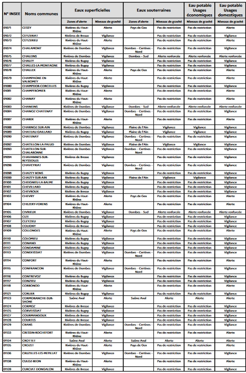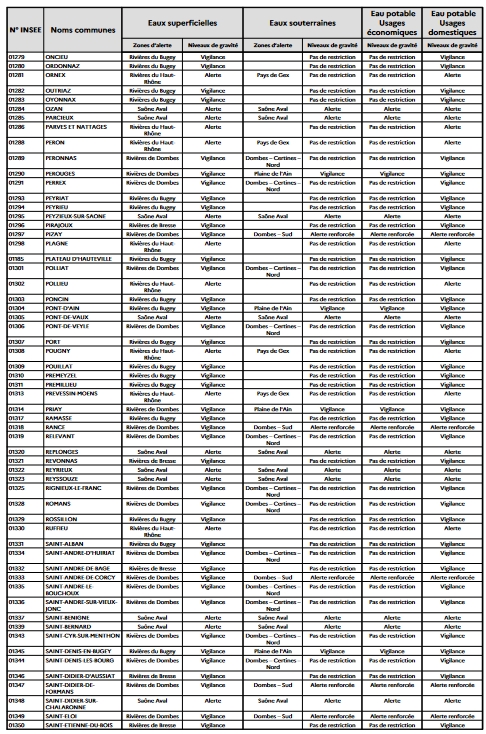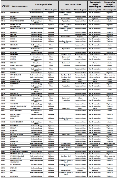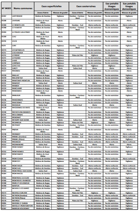 - plaçant la zone d’alerte eaux souterraines « Plaine de l’Ain » en situation de vigilance ;