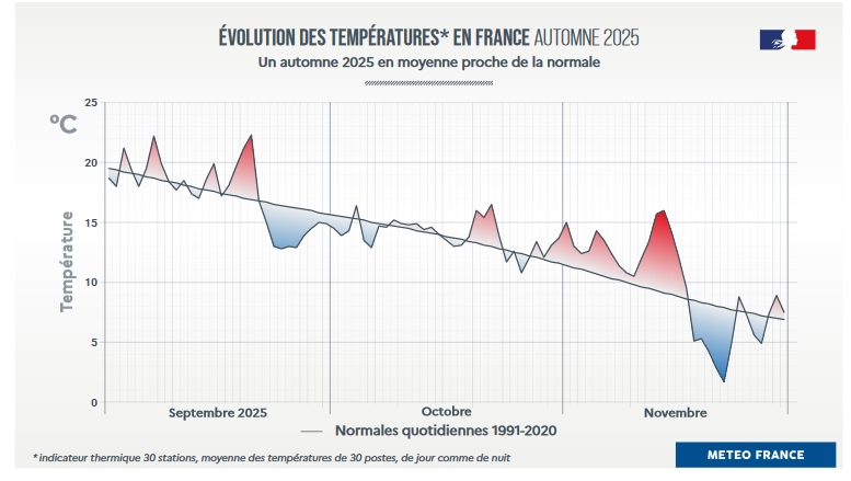 Faits marquants : Précipitations excédentaires, épisode de fraîcheur fin novembre