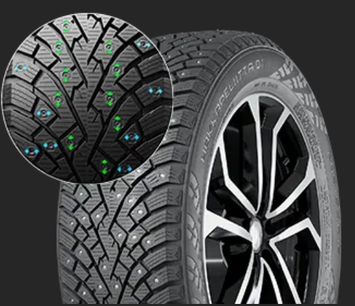 Le concept est aussi élégant que technique. À l’intérieur de chaque pneu, sous la surface de roulement que vous voyez et que vous touchez peut‑être avec vos propres mains, se trouve un jeu de trois couches de matériaux, chacun avec un rôle bien précis. La plus profonde, souvent appelée “composé de base réactif”, est sensible à la température : lorsqu’elle est exposée à des conditions froides, comme des températures égales ou inférieures à zéro, cette base se rigidifie. Cette rigidité pousse mécaniquement les clous vers l’extérieur, exactement là où il faut qu’ils mordent la glace ou la neige dure. Au contraire, lorsque le thermomètre grimpe, cette même matière se ramollit, permettant aux clous de rentrer légèrement dans la gomme, réduisant le contact métal‑revêtement. Ce n’est plus un pneu figé comme ceux d’antan, c’est un pneu qui s’adapte à la météo en temps réel, un peu comme si ses clous avaient des capteurs intégrés sans qu’un seul circuit électronique ne soit nécessaire.